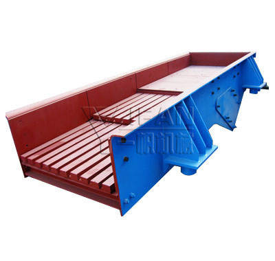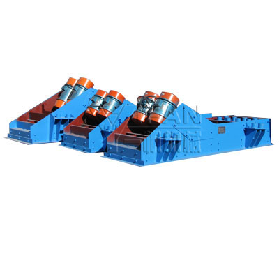 GZT系列振動給料機(jī)主要由一對性能參數(shù)一致的振動電機(jī)為激振源,當(dāng)兩臺振動電機(jī)以相同的角速度作反向運(yùn)轉(zhuǎn)時,其偏心塊所產(chǎn)生的慣性力在特定的相位重復(fù)疊加或抵消。從而產(chǎn)生巨大的合成激振動力,使機(jī)體在支撐彈簧上作強(qiáng)制振動,并以此振動為動力,帶動物料在料槽上作滑動及拋擲運(yùn)動,從而使物料不斷前移而達(dá)到給料目的。當(dāng)物料通過槽體上的篩條時,較小料可透過篩條間隙而落下,不經(jīng)過下道的破碎工序,起到篩分的效果。