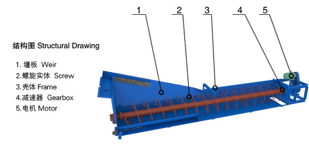 螺旋洗砂機(jī)分為單螺旋洗砂機(jī)和雙螺旋洗砂機(jī)兩種,主要用于公路,水電,建筑等行業(yè)的洗選、分級(jí)、除雜,以及細(xì)粒度和粗粒度物料洗選等作業(yè)。具有功率消耗小、洗凈度高。密封結(jié)構(gòu)好、全封閉傳動(dòng)裝置、可調(diào)式堰板,確保了 設(shè)備高效、耐用、清洗、脫水效果好、細(xì)粒產(chǎn)品保持穩(wěn)定等特點(diǎn)。 XL系列砂石洗選機(jī)可清洗分離砂石中的泥土和雜物,其新穎的密封結(jié)構(gòu)、可調(diào)溢流堰板、可靠的傳動(dòng)裝置,確保清洗脫水的效果。廣泛適用于公路,水電,建筑等行業(yè)的洗選、分級(jí)、除雜,以及細(xì)粒度和粗粒度物料洗選等作業(yè),對建筑和筑路用砂石尤為適宜。